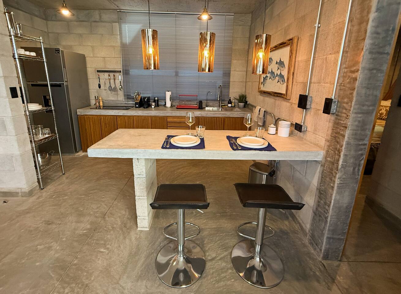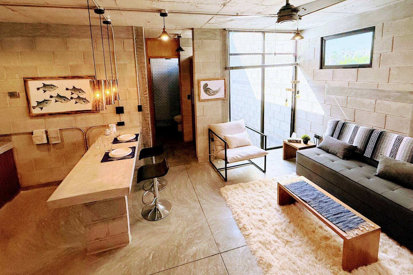 Welcome to Santas y Santos just minutes from the center of town by car, and private enough for rest and relaxation back at your lodgings. This industrial-contemporary condominium complex harmoniously blends modern sophistication with traditional design for comfort. Shared social spaces are enjoyed throughout the property and the most favored is the upper deck with eating space, loungers, a barbeque grill, sun shades, and evening party lights. Parking is free.